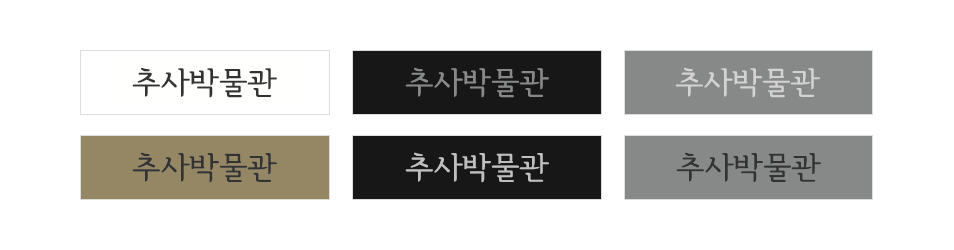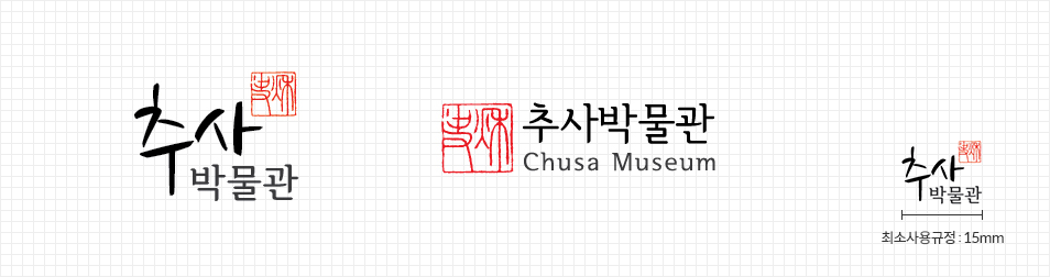 전해오는 추사 김정희의 인장 가운데 대표적인 양각 인장을 채택하여 추사의 학문과 예술혼을 계승함을 상징합니다. 추사 김정희의 인장에 어울리는 나눔손글씨체와 서울한강체를 사용하여 추가 글씨의 공간감과 세련미를 표현하였습니다.