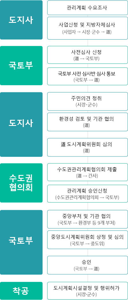 - 관리계획 승인신청(수도권관리계획협의회 → 국토부)