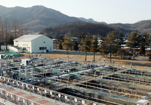 최종침전지 유출수를 총인처리시설에서 응집제(염화제2철)을 주입하여 모래와 여과흡착과정으로 인(T-P)을 제거하는 시설입니다.