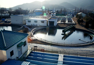 하수중 침전슬러지의 일부는 생물반응조로 반송되어 유입 하수와 혼합 포기시켜 활성슬러지 생성을 촉진시키고 일부는 농축기로 보내지며 상등수는 월류되어 인제거를 위하여 총인시설로 이송됩니다.