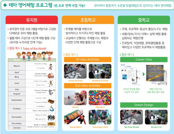 유아부터 중등까지 수준별 맞춤체험으로 깊어지는 테마 영어체험