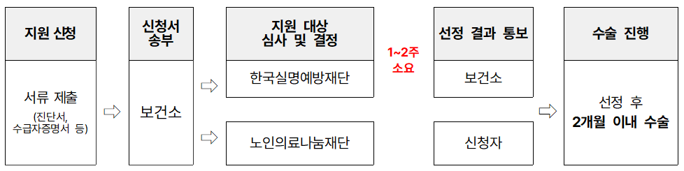 - 지원대상자는 통보 받은 후 2개월 기한 내 수술 진행