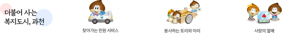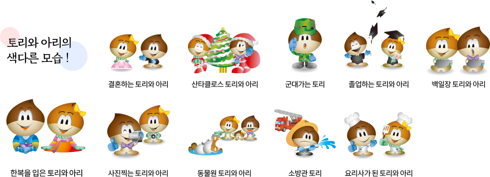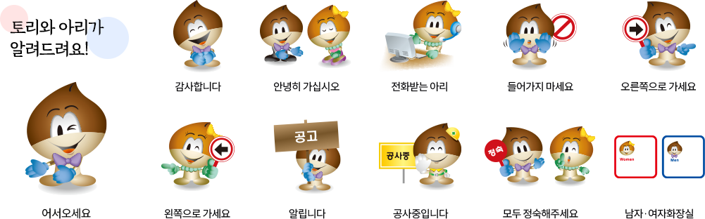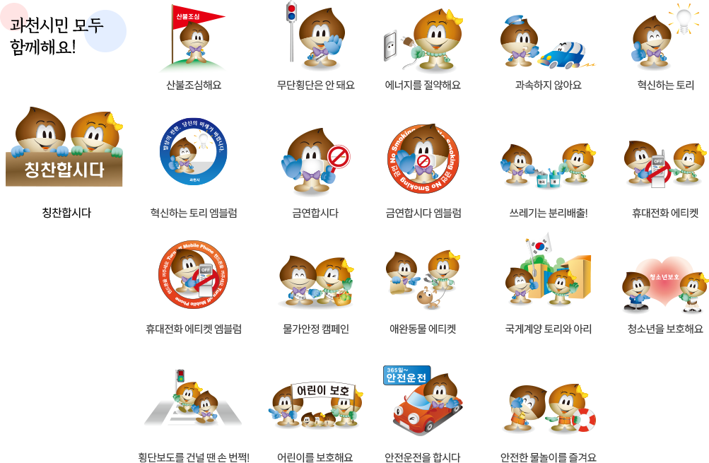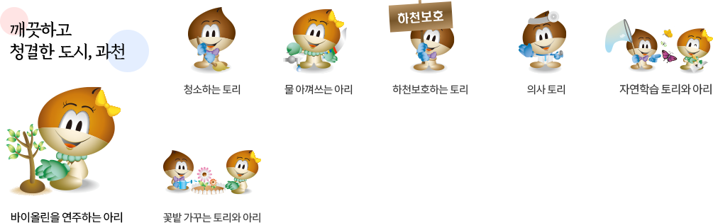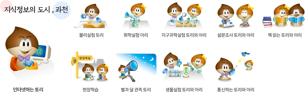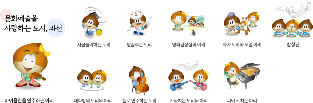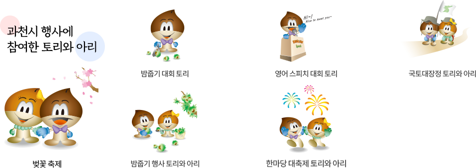 토리와 아리는 1999년 4월 시민들의 호응에 힘입어 새롭게 선보인 과천의 마스코트다.