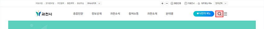 홈페이지를 이용 중일 경우, 상단의 돋보기 버튼을 통해 검색이용.