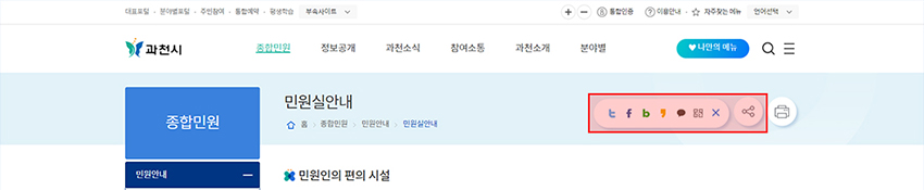 - 현재 보고있는 페이지의 메뉴를 SNS에 공유할 수 있습니다.